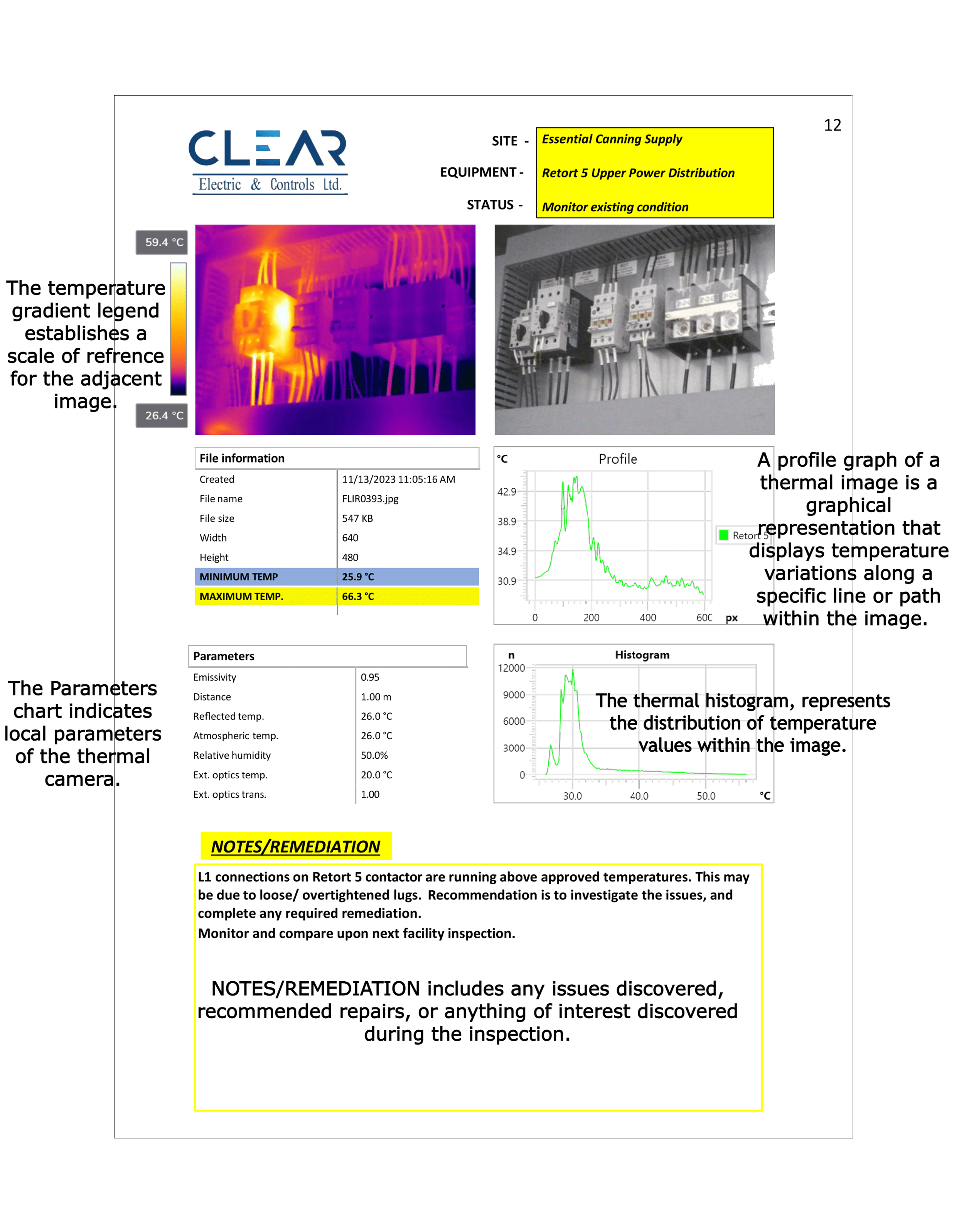 Finally, we deliver a detailed report summarizing our findings, including identified issues, recommended actions, and a comprehensive analysis of the thermal imagery, empowering the client with actionable insights for maintenance and decision-making.
